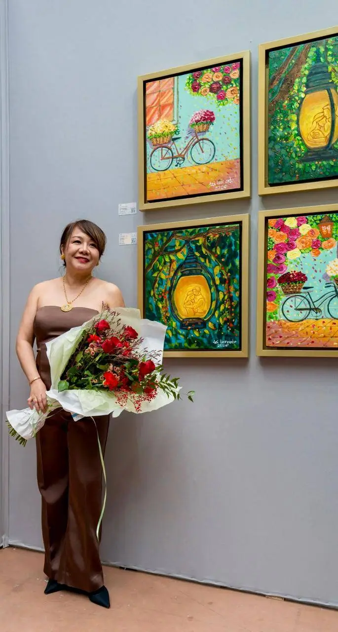 Led by lawyer-artist Atty. Tei Leonardo-Ampon, the FAVA delegation—including Maita S. Acevedo, Doodz A. Iligan, and Brando L. Bati—presented works that blended cultural heritage with modern sensibility. Leonardo-Ampon exhibited four evocative pieces. Her “La Luz De Amor” series and the whimsical “Happy Flowers on a Bicycle” series drew significant praise for their use of light and color.