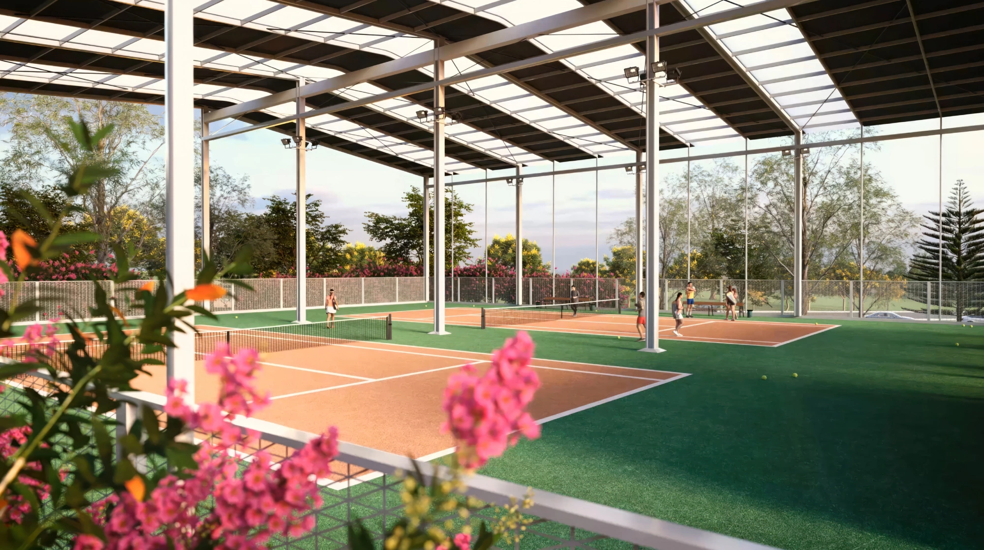 Conceptual rendering of the new covered tennis courts, complete with its own lounge and changing rooms, are just some of the many enhancements being introduced to elevate the village’s amenity offerings.